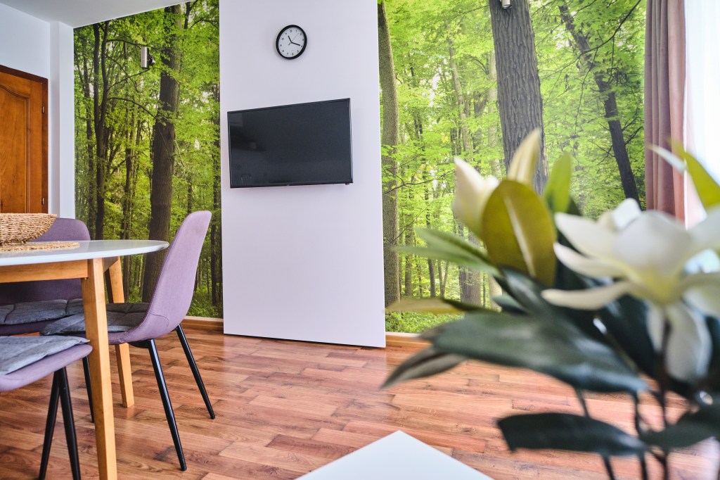 Opis: Moderno dizajniran i dobro izolovan trokrevetni apartman u potkrovlju. Poseduje spavaću sobu sa udobnim francuskim ležajem, kompletnu kuhinju, trpezarijski sto za četiri osobe, moderno kupatilo. Zanimljiva foto tapeta sa motivom šume i prirode celom prostoru daje posebnu atmosferu. Ima terasu na južnoj strani koja gleda na planinu Ozren.